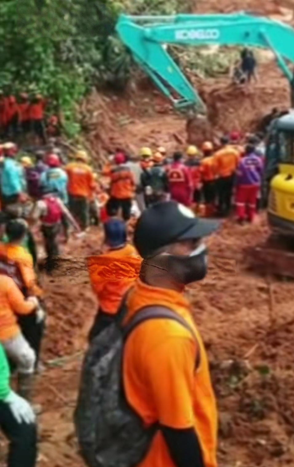 Longsor Belasan Meter Timbun Rumah Warga, Tangisan Sandi Pecah Cari Jejak Keluarga yang Hilang.