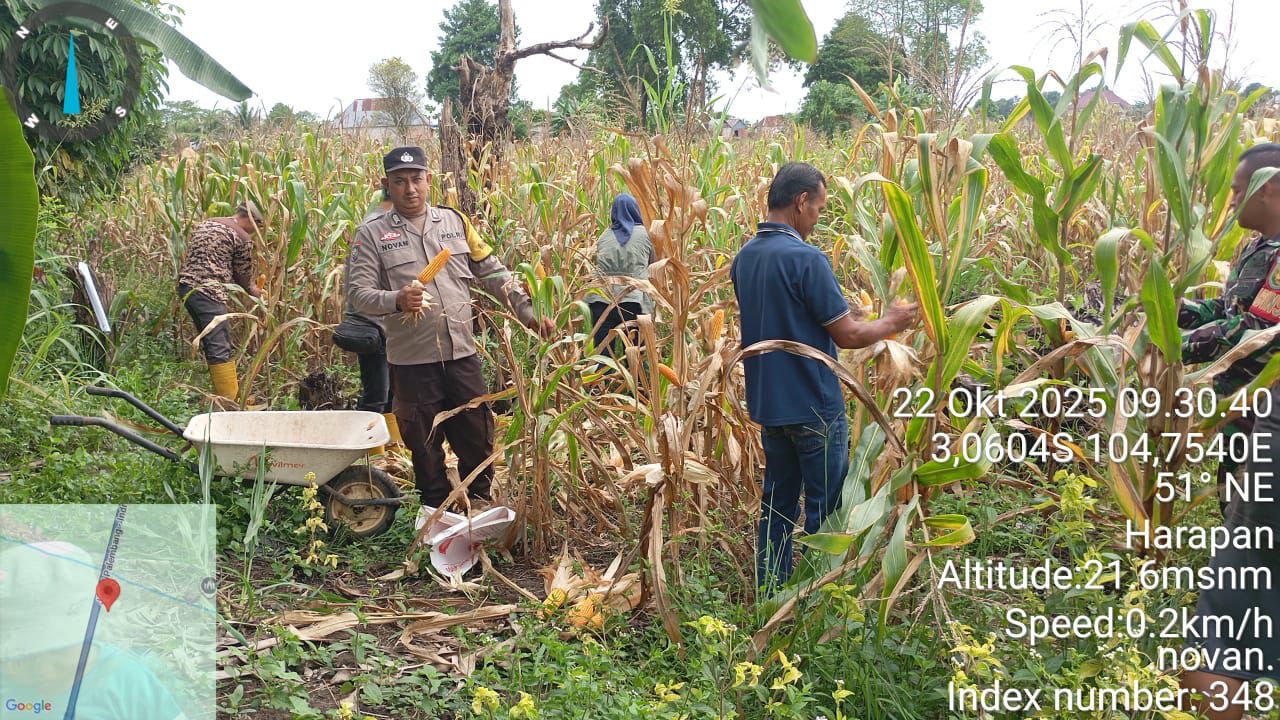 Wujud Nyata Dukungan Asta Cita, Polsek Pemulutan Gelar Panen Jagung Bersama Kelompok Tani